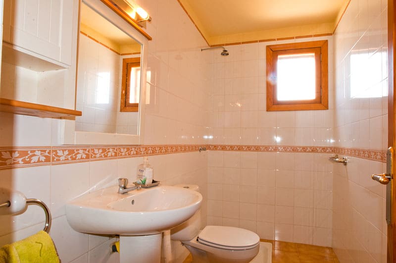 Oben im Haus sind zwei Schlafzimmer, eines mit zwei Einzelbetten und eines mit Doppelbett, sowie ein weiteres Bad mit Dusche untergebracht.